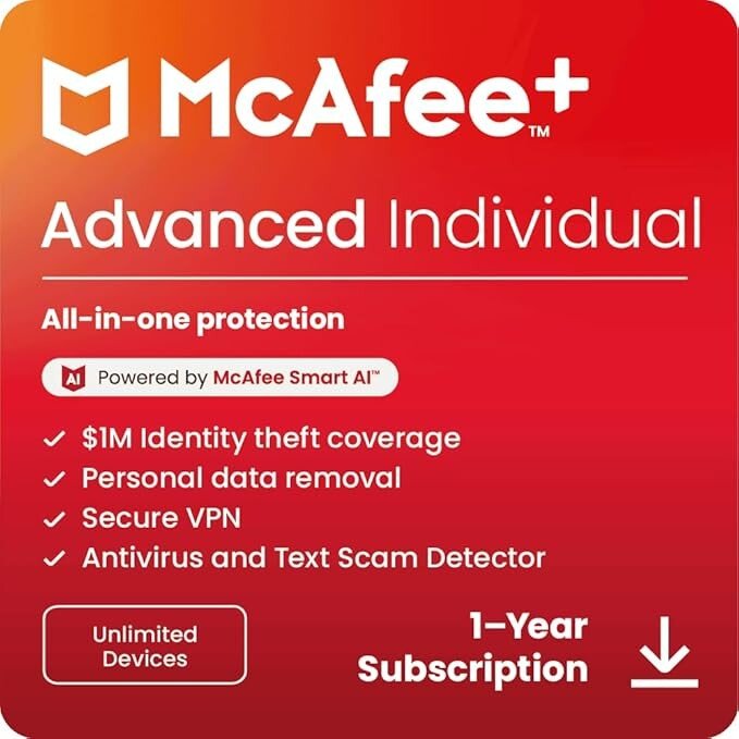 McAfee+ Advanced Individual 2025 – Unlimited Devices | Identity & Privacy Protection